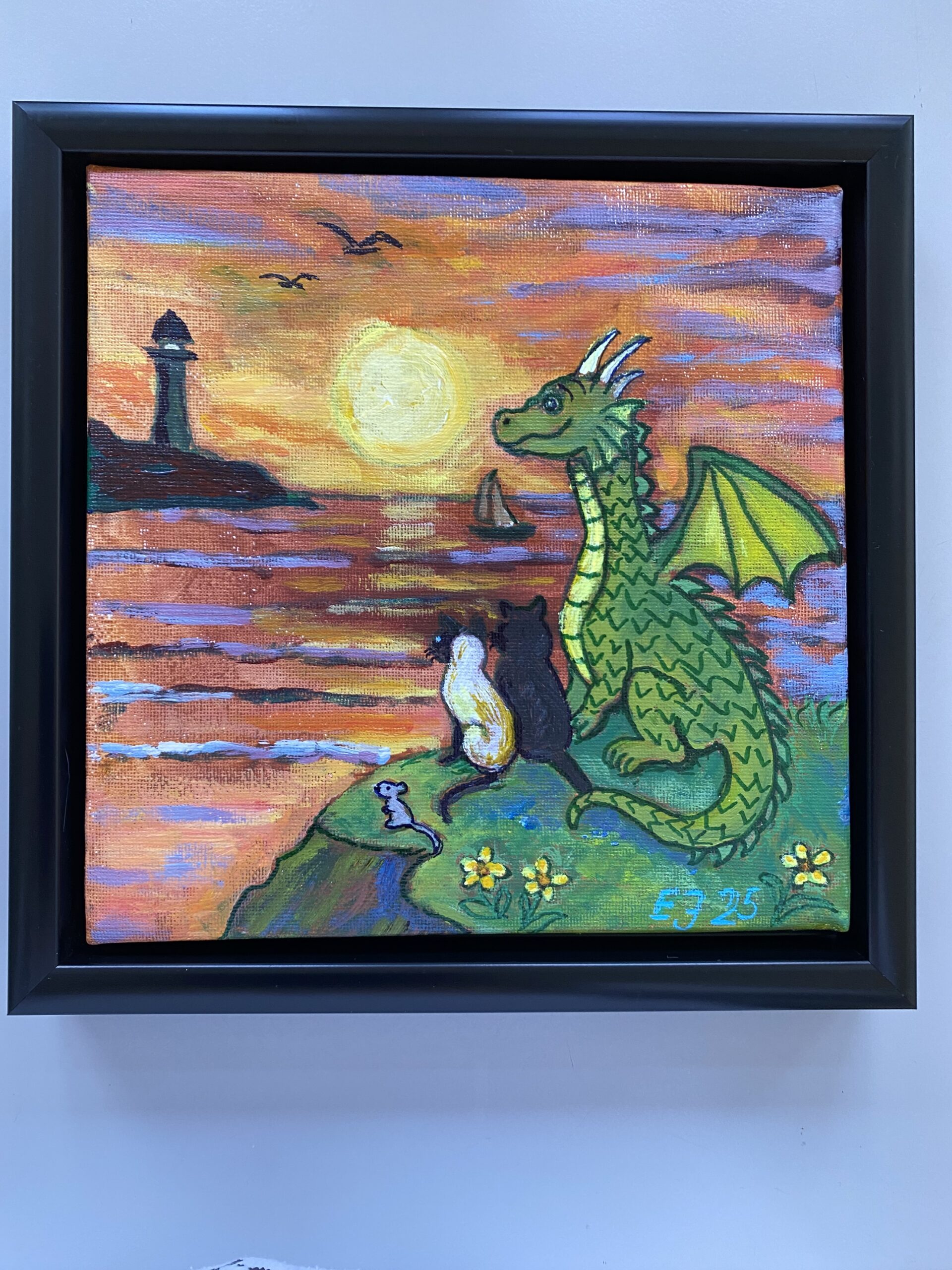 ![]() ![]() | Drage med katte Akryl på lærred 20 x 20 cm Pris: 500 kr |